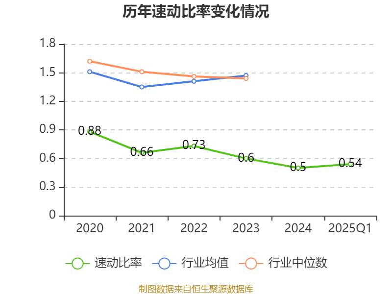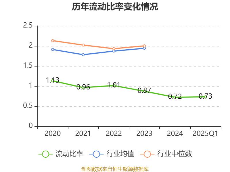2025年第一季度,公司流动比率为0.73,速动比率为0.54。