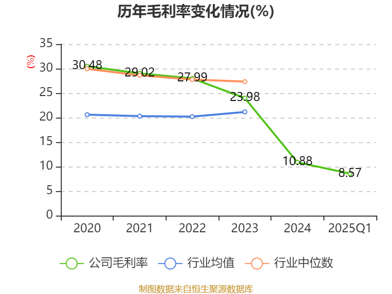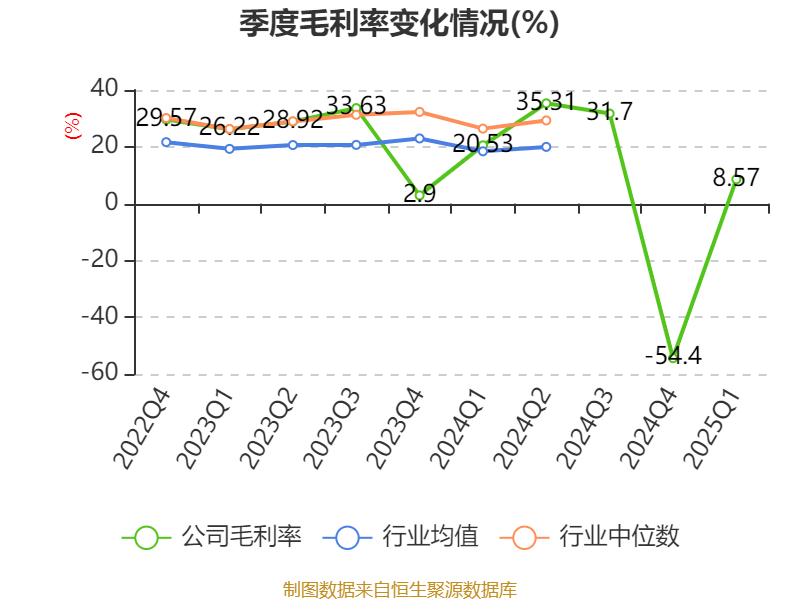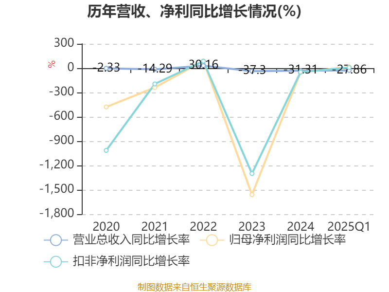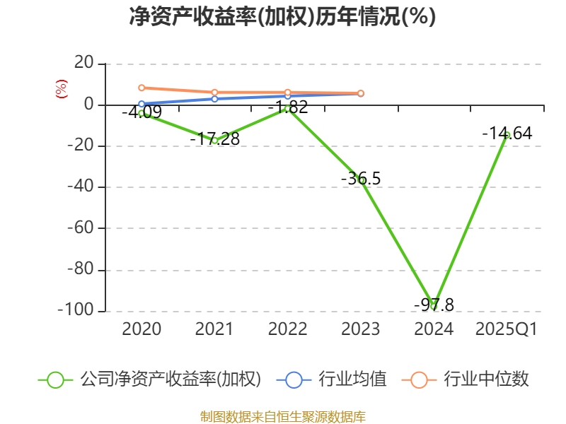 盈利能力方面, 2025年一季度公司加权平均净资产收益率为-14.64%,同比下降4.87个百分点。公司2025年第一季度投入资本回报率为-5.71%,较上年同期下降2.13个百分点。