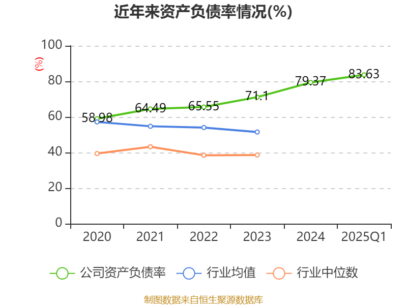 负债重大变化方面,截至2025年一季度末,公司其他应付款(含利息和股利)较上年末增加199.16%,占公司总资产比重上升18.53个百分点;短期借款较上年末减少15.88%,占公司总资产比重下降4.39个百分点;应付票据及应付账款较上年末减少7.45%,占公司总资产比重下降3.65个百分点;持有待售负债较上年末减少92.72%,占公司总资产比重下降2.4个百分点。